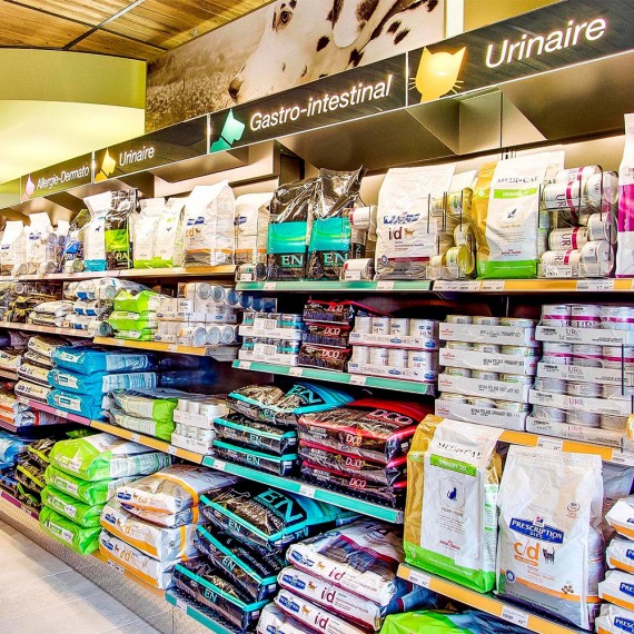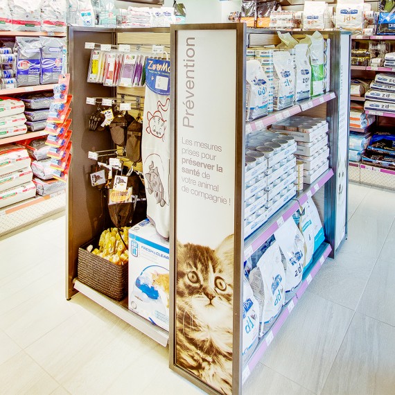 Une très vaste gamme de produits de soins (shampoing, nettoyeur d’oreille, brosses…) et d’accessoires pour chiens et chats sont disponibles à notre boutique.